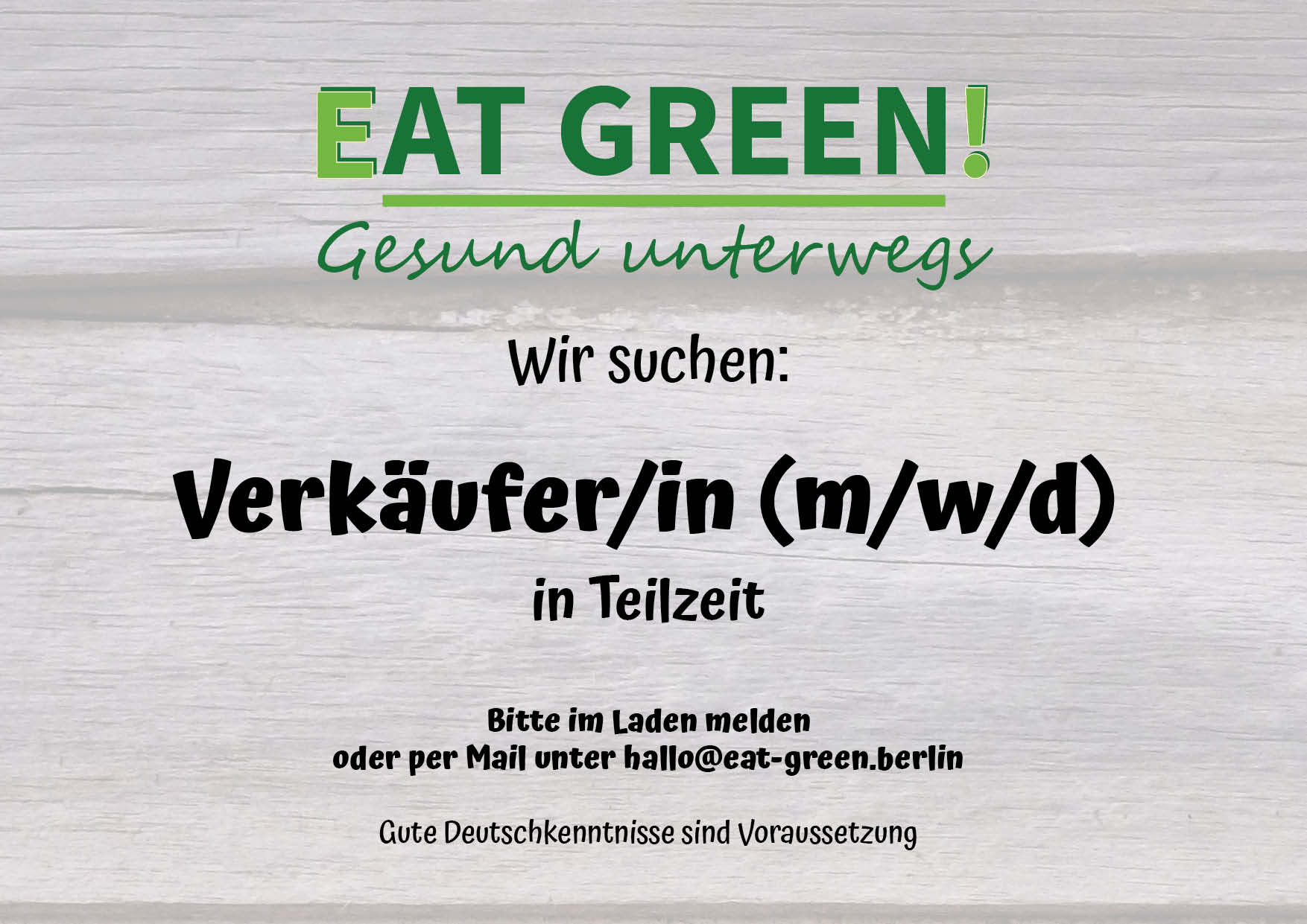 Für eine umfassende Beratung der Kunden benötigst Du gute Deutschkenntnisse sowie Grundkenntnisse der englischen Sprache. Ein gepflegtes Äußeres setzen wir voraus.